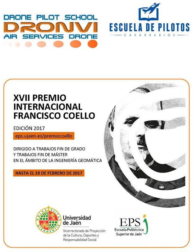 Dronvi - Air Services Drone colabora con el Premio Internacional Francisco Coello ofreciendo a cada premiado un curso teórico online gratuito sobre piloto de drones/rpas, valorado en 500 €.